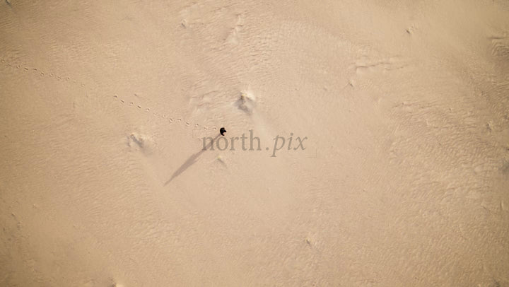 Aerial View of Person Walking on Sandy Beach in Skvalpen Archipelago, Lulea, Sweden