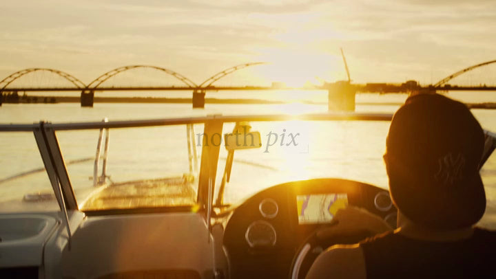 Boating on the Luleå River at Sunset During Golden Hour, Luleå Sweden