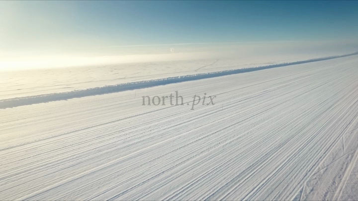 Driving on a Snowy Ice Road in the Lulea Archipelago, Sweden - Winter Drone View