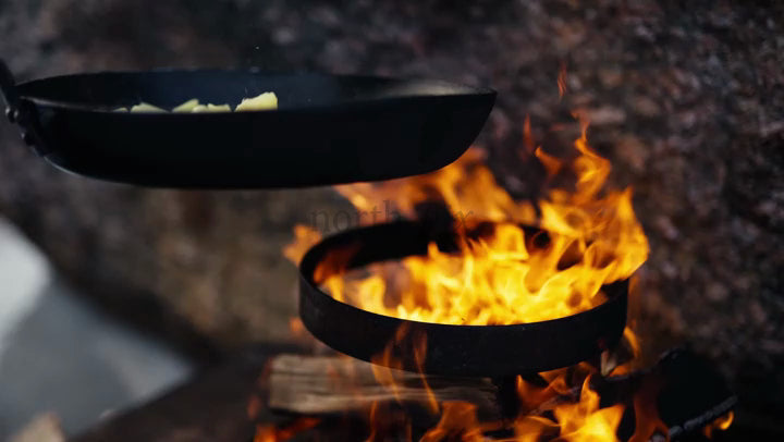 Frying Potatoes and Onions Over an Open Fire in Luleå, Sweden During Winter