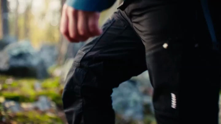 Hiker in Autumn Forest, Luleå, Sweden: Close-up of Legs and Feet