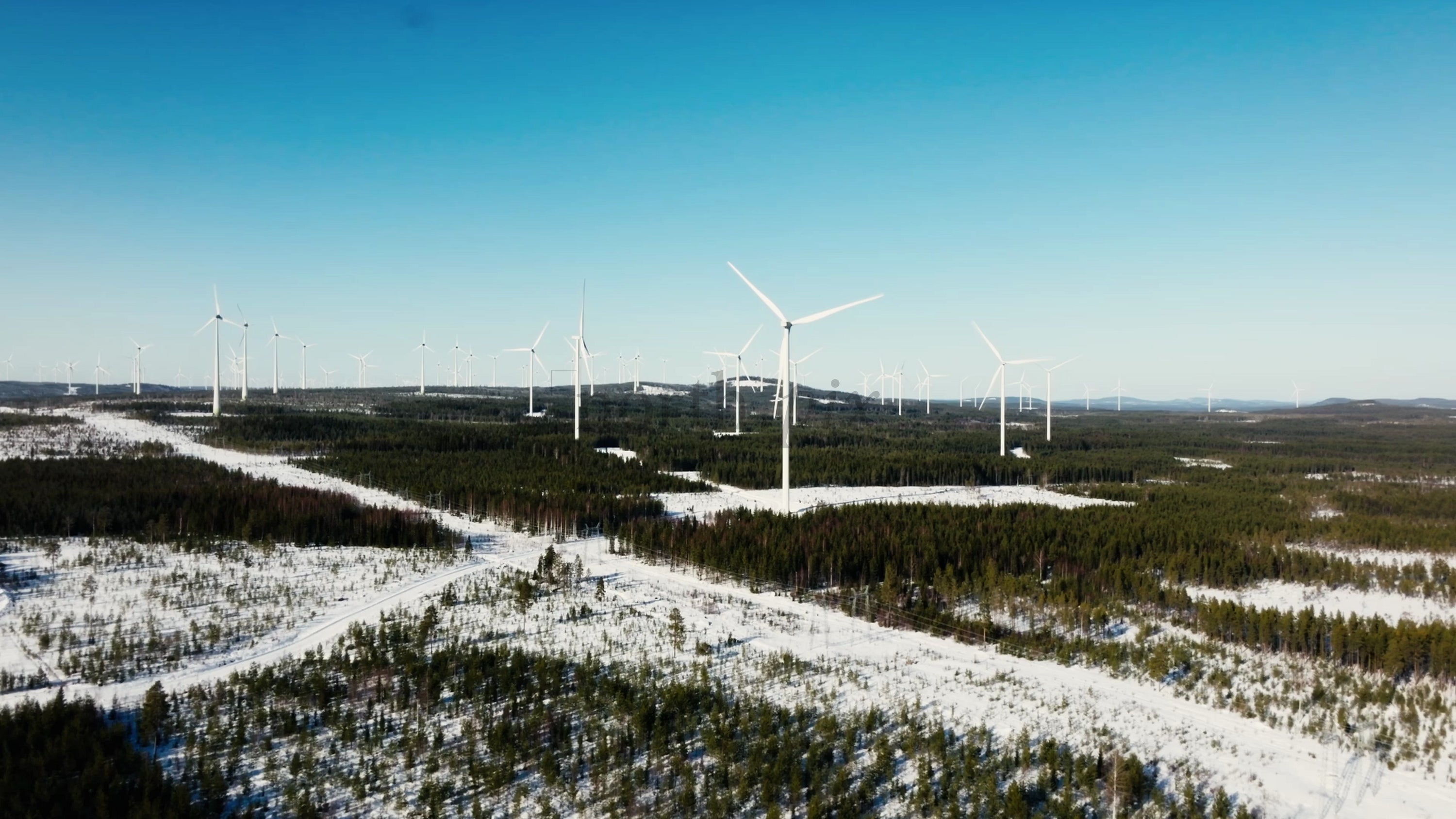 Markbygden Wind Farm: Aerial View of Winter Landscape and Clean Energy Generation