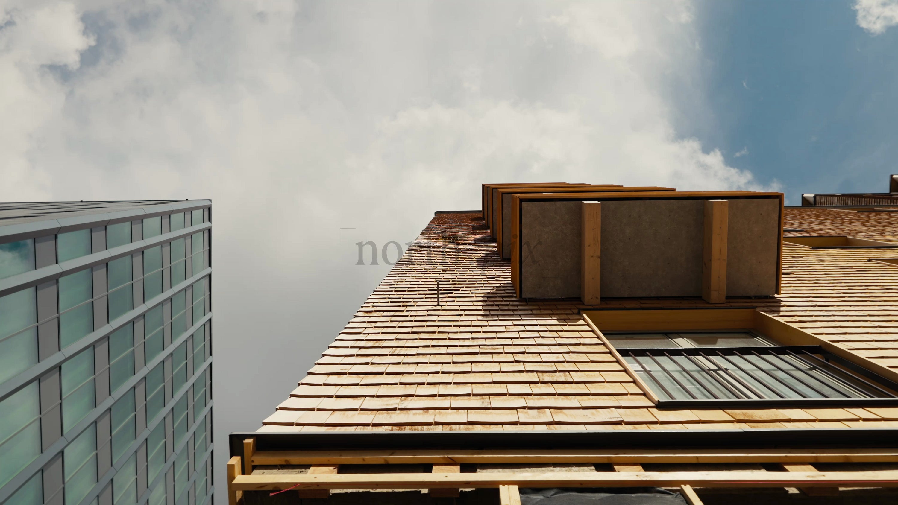 Modern Wood Architecture: Low Angle Tilt-Up of Building Exterior