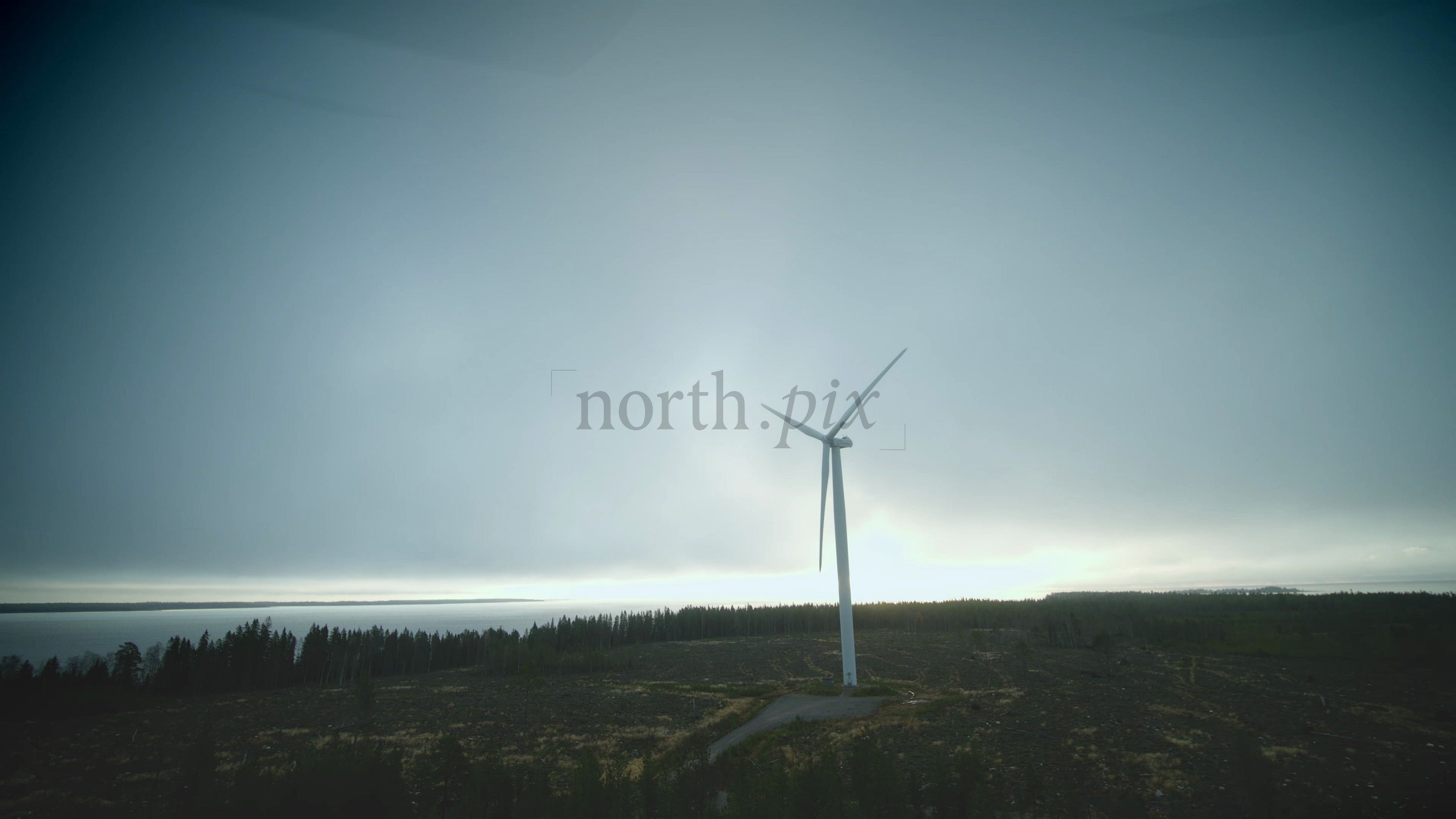 Rotating Wind Turbine by the Sea: Aerial View of Sustainable Energy in Finland