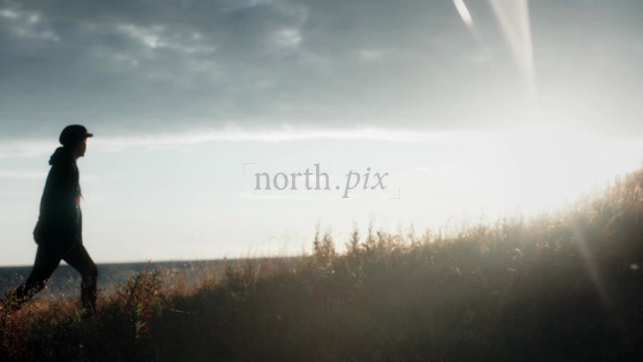 Silhouette Walking Up Hill at Sunset in Luleå Archipelago, Sweden