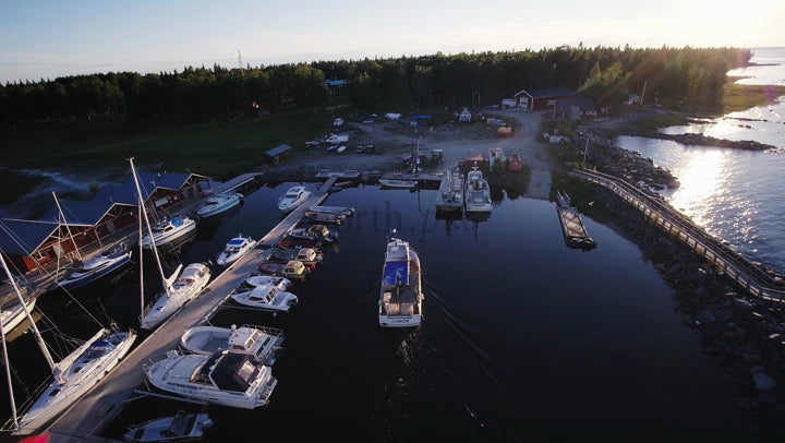 Summer Evening in Lulea: Aerial View of Junkön Archipelago Harbor at Golden Hour