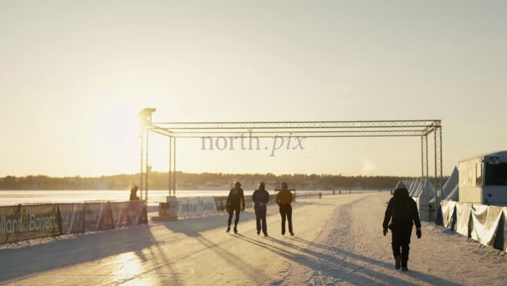 Winter Day Ice Skating and Walking on Frozen Lake in Luleå, Sweden
