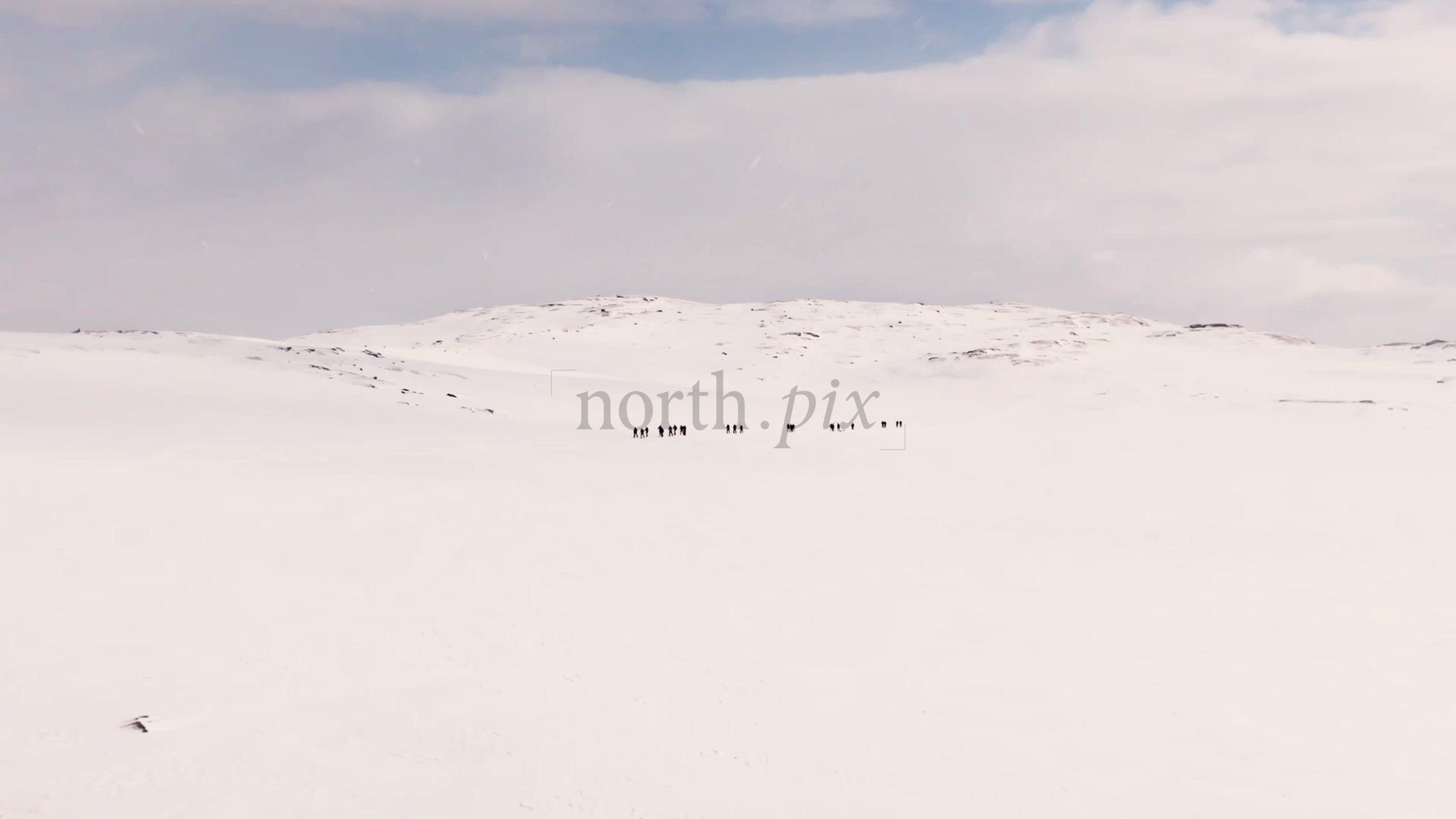 Group of people hiking on a snowy mountain. Winter sports enthusiasts enjoying the scenic beauty of Riksgränsen.