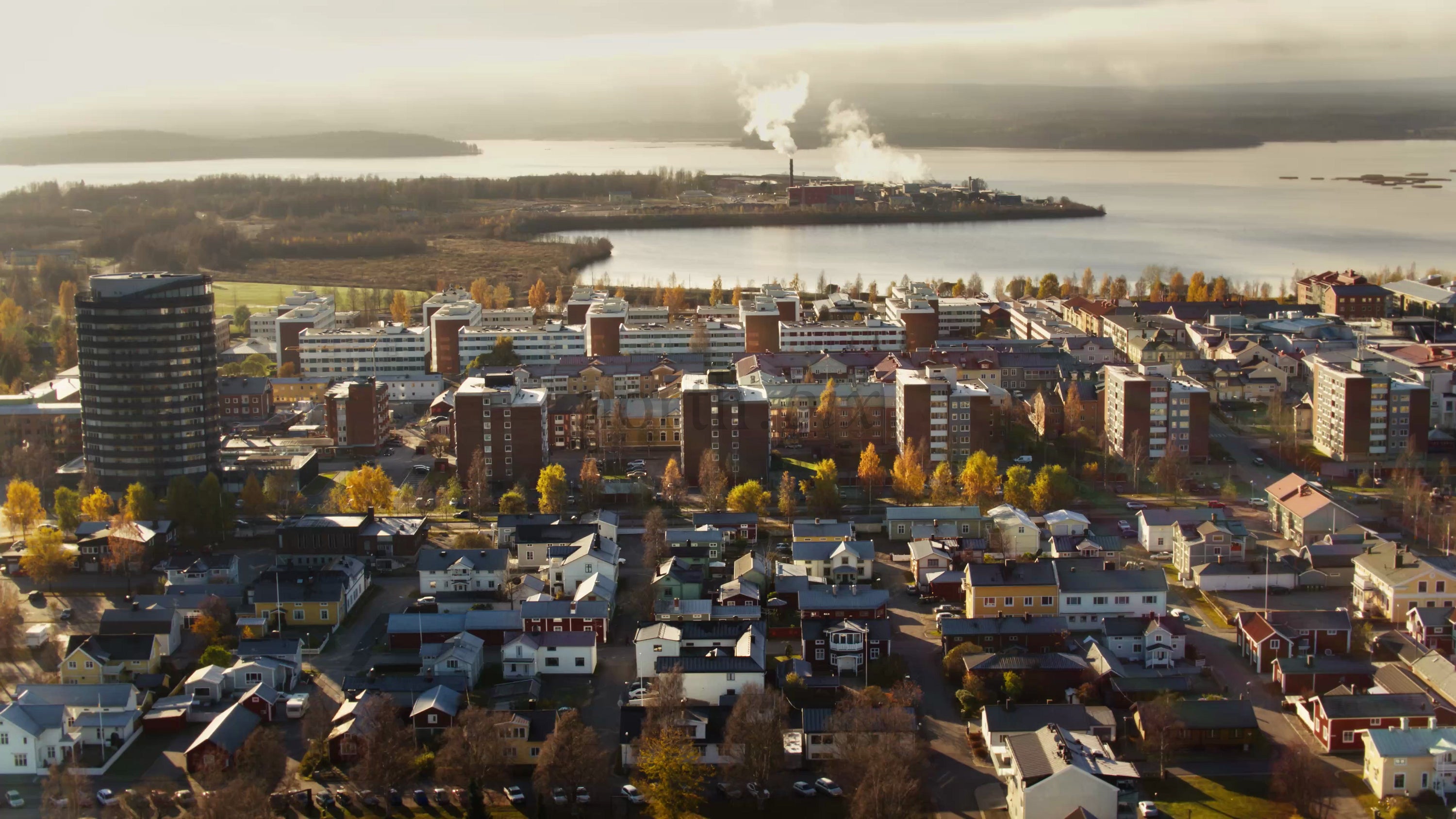Piteå City Aerial View in Autumn, Featuring Residential Areas and Industrial Landscape